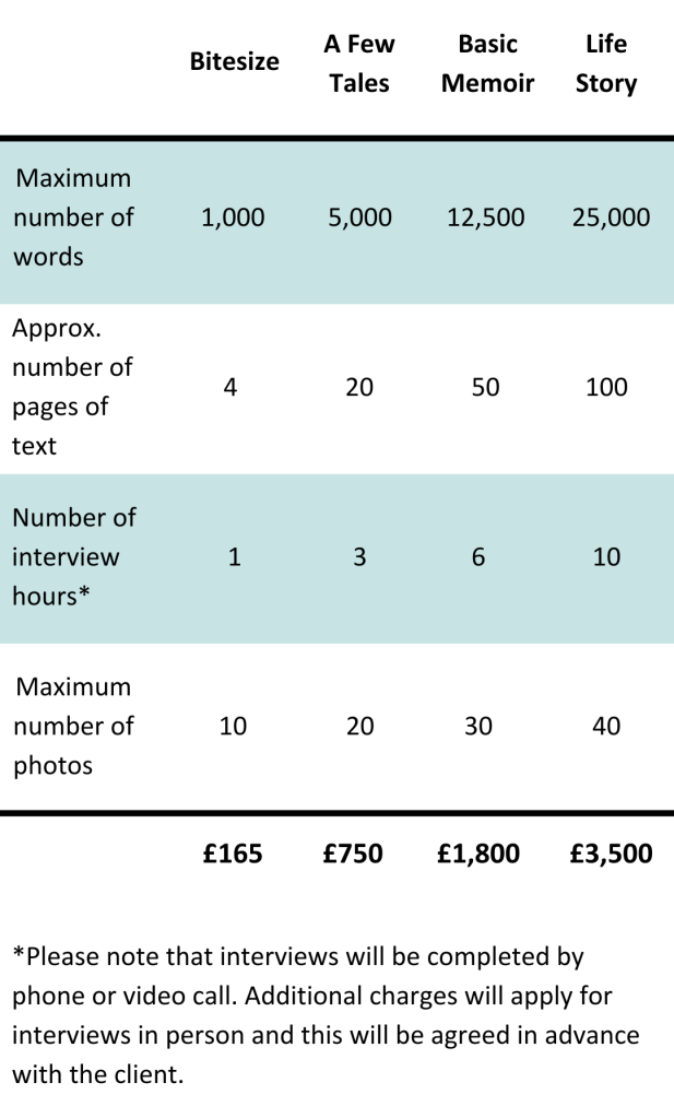 Still not sure? The sample biography extracts provided have a word count listed which will help you to get an idea of size, however, I am happy to discuss this with you and help you work out the best package that suits you.